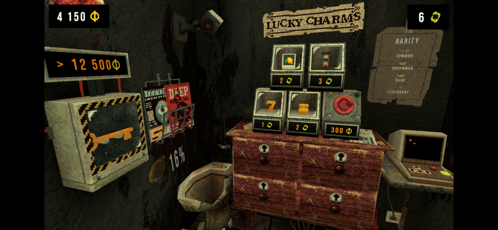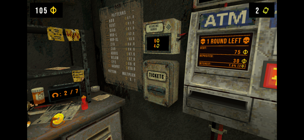 Strekker du ikke til når pengene skal betales, faller du gjennom gitteret i gulvet på cellen dini et sort ekkelt hull og må begynne på nytt. Det er dette som er gameplay-loopen, og fy fader så avhengighetsskapende den er. Jeg har ikke klart å komme meg veldig langt ut i rundene mine, til tross for hvor mange timer jeg har puttet inn i spillet, men jeg koser meg altså så mye når jeg spiller. Jeg regelrett sliter med å lukke spillet når jeg først setter meg med mobilen for bare én runde før jeg skal gjøre noe annet.