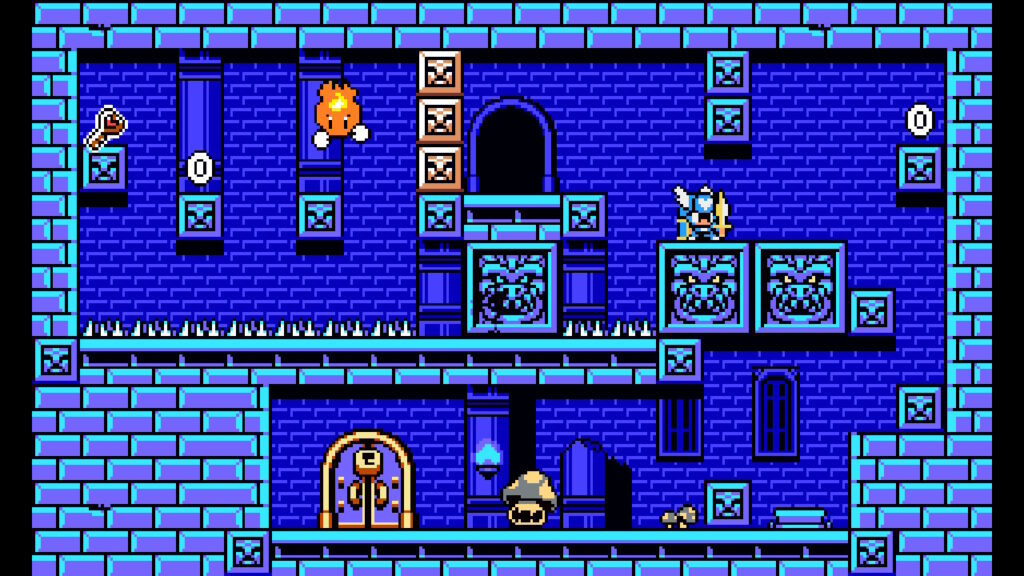 Det jeg tenkte innledningsvis med hvor jeg føler inspirasjonen til spillet kommer fra, er at hvert brett foregår på én skjerm hvor du har et mål om å komme deg helskinnet fra start til mål. Dette er lettere sagt enn gjort når du kommer et stykke oppover tårnet. Sir Solomon har nemlig bare ett liv. Treffer du en fiende eller et hinder som forårsaker skade, er det bare å begynne brettet helt på nytt. Som i Super Meat Boy holder det heldigvis å trykke høyre pil på D-paden og du er i gang igjen. Dette er med på å opprettholde den gode flyten Lovish har. Du kommer til å dø en hel del ganger, og da er det veldig viktig at spillet opprettholder momentum slik at du raskt kommer inn og kan prøve på nytt.