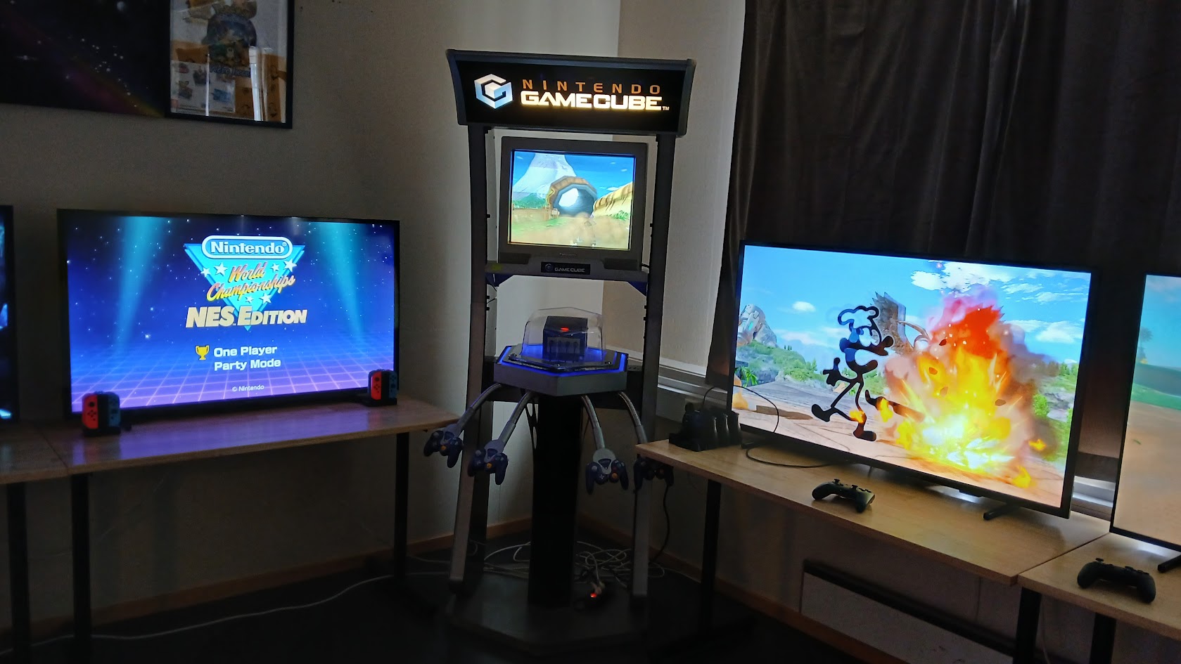 Går vi rundt i lokalene til Retromessa Hub er det imidlertid vanskelig å se for seg at noen vil mangle noe de har et forhold til, for her blandes gammel og ny spillkultur i skjønn forening. Her er et eget spillerom med flere datamaskiner levert av sambygdingen Komplett, inngangspartiet lokker med en klassisk spillstasjon og GameCube-klassikeren Donkey Konga, og langs taket og veggene finner vi meter på meter med Lego-dekorasjoner. En egen hylleseksjon er dedikert til en komplett samling av Super Smash Bros.-amiiboer (noe jeg vet ut ifra egen lommebok ikke er en billig investering). Toppen av kransekaka er arkaderommet hvor spillkonsoller fra hele spillhistorien står på rekke og rad, hvor de som kommer kan bryne seg på alt fra Street Fighter II og Tetris Forever til Mario Kart: Double Dash!! og Mario Kart 8 Deluxe (de to beste spillene i serien, med andre ord). Det hele føles som å tre inn i en japansk arkade, bare med et desibelnivå som er hakket mer forsonlig med norske HMS-regler.