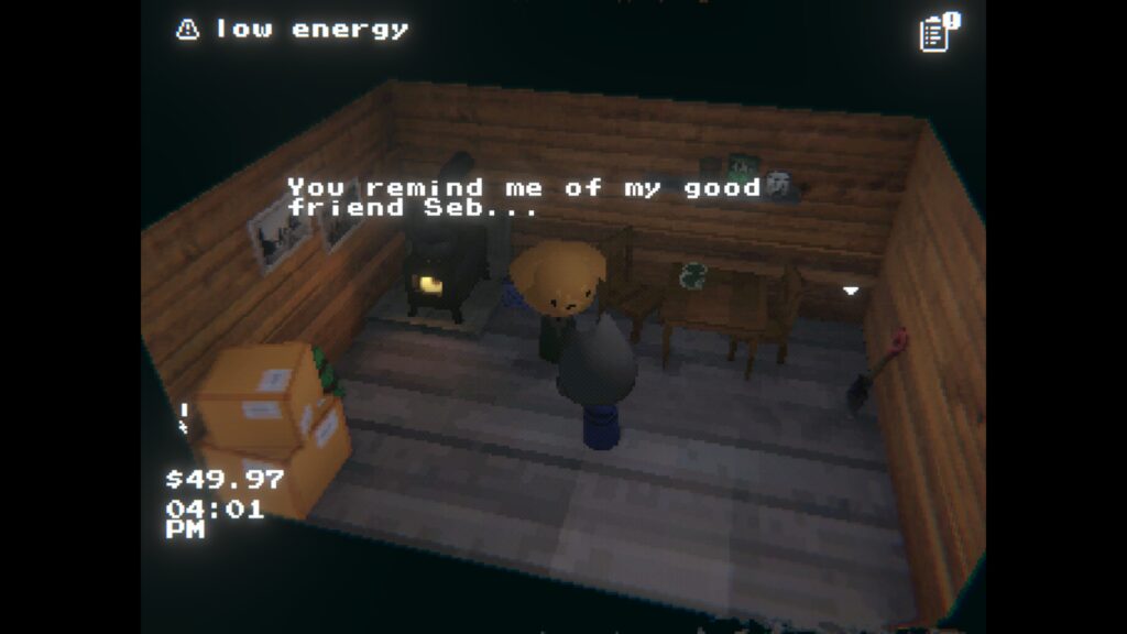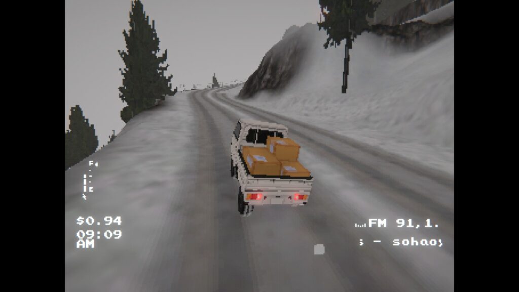 Skrekken i Easy Delivery Co ligger kun i det sublime. Du blir aldri direkte fortalt at du skal være redd, men du føler deg heller aldri totalt tilfreds. Karakteren din er kontinuerlig i fare for å fryse ihjel, sovne eller gå tom for bensin. Det føles som en syklus som aldri vil ta slutt. En slik karriere føles utrolig isolerende, og jeg opplever et kontaktsøkende behov. Og å da møte på karakterer jeg heller vil rømme vekk fra, er med på å styrke ensomheten i dette utrolig dystre spillet.