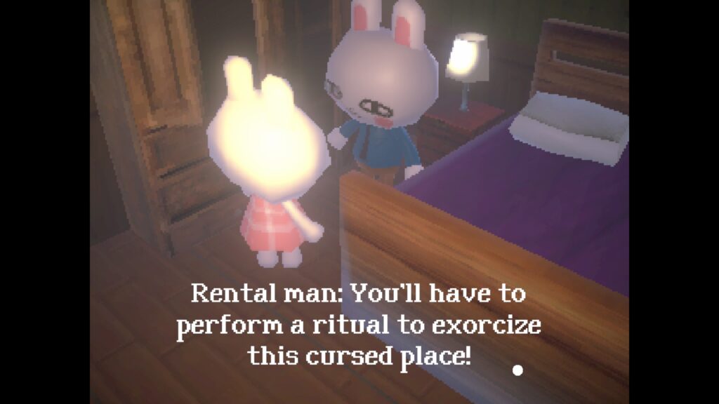 I et av rommene lenger inn, står en fortapt utleier og advarer deg om forbannelser og gjenferd. Han forteller deg at du er nå evig fastlåst i dette skumle universet, om du ikke utfører ritualet som bortviser demonene. Med en liste over ulike gjenstander du behøver, blir det nye oppdraget ditt tydelig.