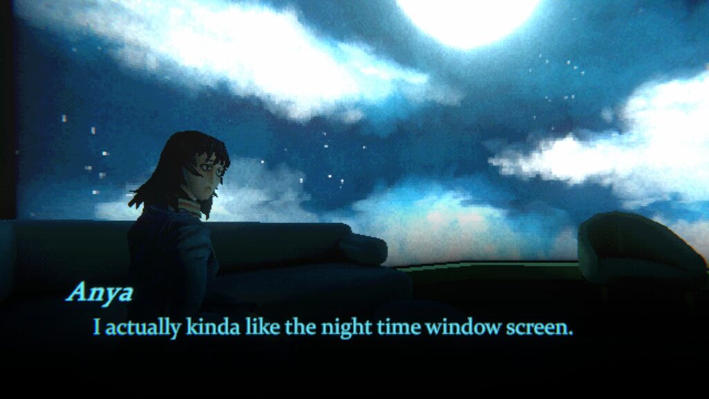Noen av de dypeste og viktigste samtalene senere i spillet skjer med og om Anya. Som den eneste kvinnen om bord, gjør hun ofte refleksjoner rundt hva dette betyr. Noe ved henne føles ekstremt malplassert, som hun uttrykker å kjenne på selv.