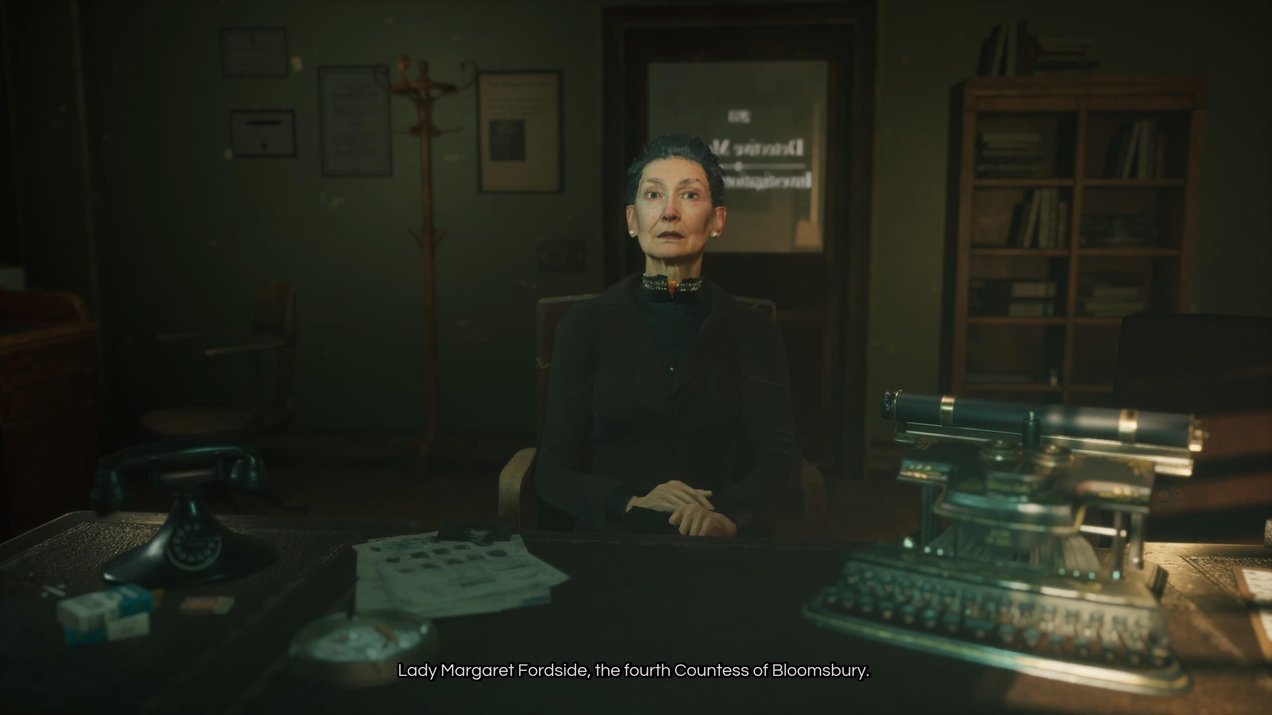 Tankene mine var like tåkete som en høstdag i London, men jeg kom meg tilbake til kontoret. Jeg trengte noe for å roe nervene. Mens jeg rotet rundt i skrivebordsskuffen hørte jeg en lyd. Plutselig sto hun der. Ingen skjønnhet som fra en klassisk Hollywood-noir, men en eldre dame med øyne som hadde sett for mye.